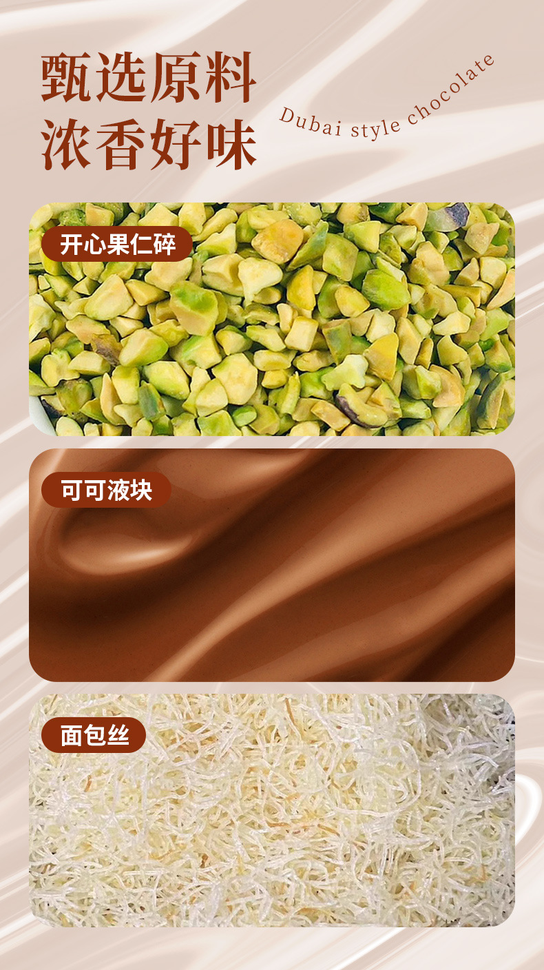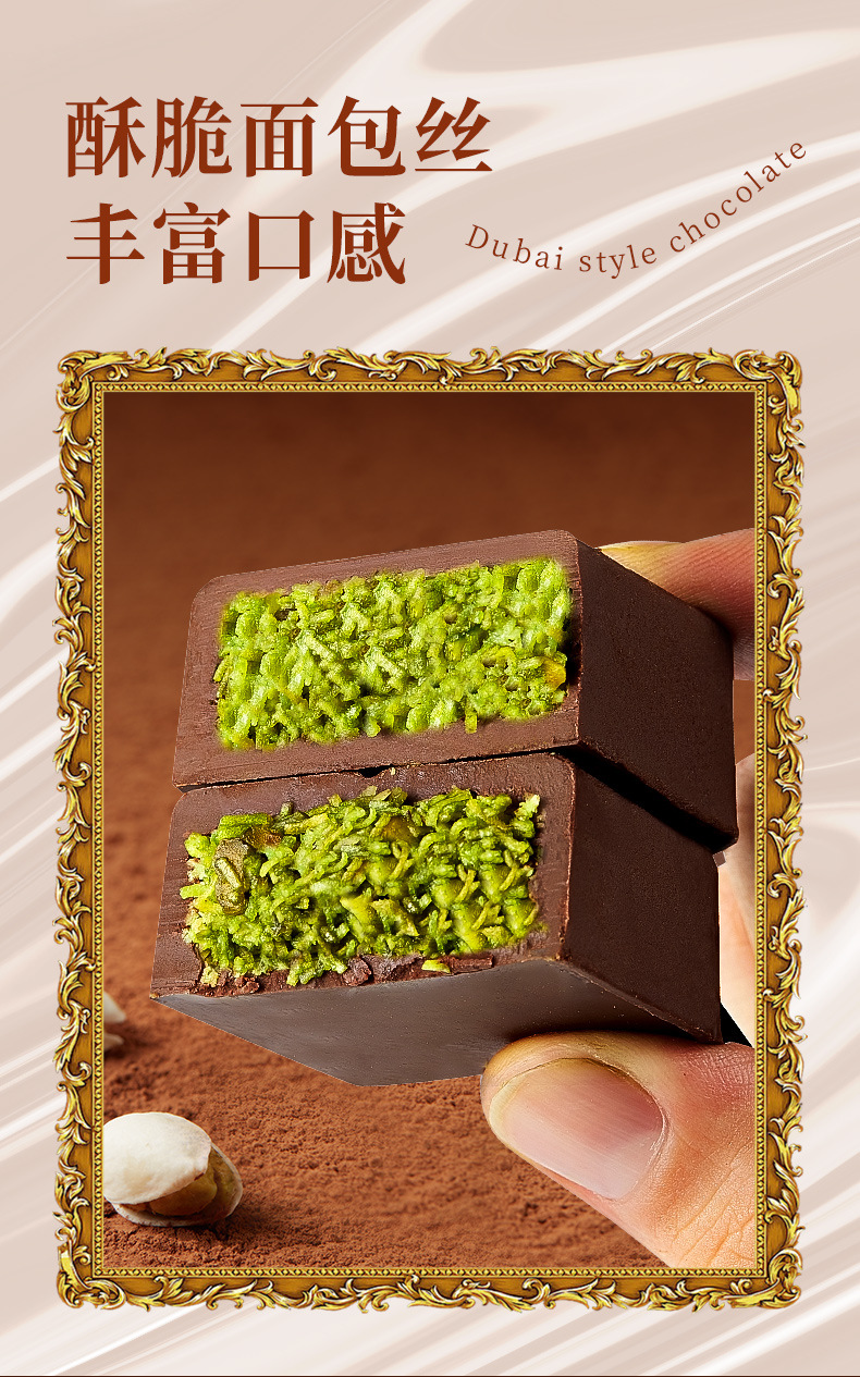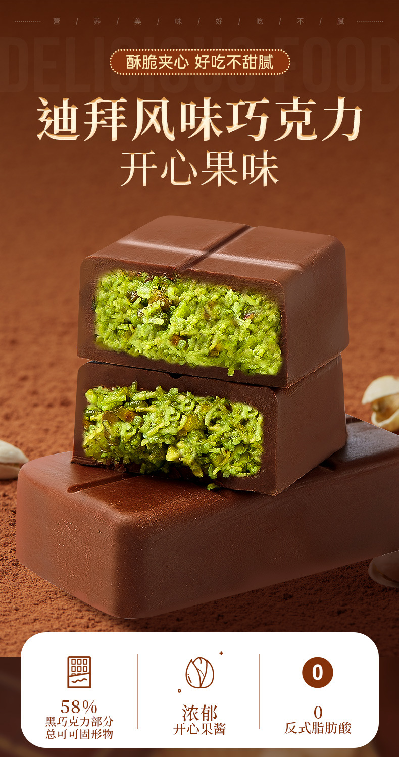 • 商品名称:迪拜风味巧克力坚果开心果夹心榛子果仁圣诞节糖果可可脂零食休闲解馋小零食品